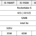 The Core i5 series is a bit more extensive with the three 11600 SKUs (K, non-K, and T), two 11500 (non-K and T), and two 11400 (non-K and T). Just like the i7 and i9 processors, the “K” SKUs come with a 125W TDP, the “non-K” with a 65W TDP, and the “T” with 35W TDP. All the i5 processors have 6 cores, 12 threads, 12MB of cache, and Intel Xe Graphics with 32EUs, except the 11400 SKUs which come a Xe Graphics iGPU with 24EUs.