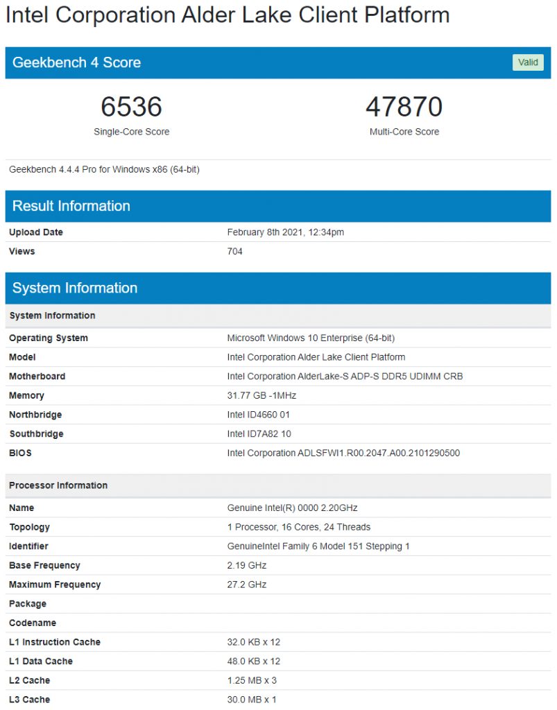 As the launch of Alder Lake processors comes closer, there has been an increase in the number of benchmark database entries for these CPUs. The latest Alder Lake-S leak comes via Geekbench 4, showing the performance of a 16C/24T processor.