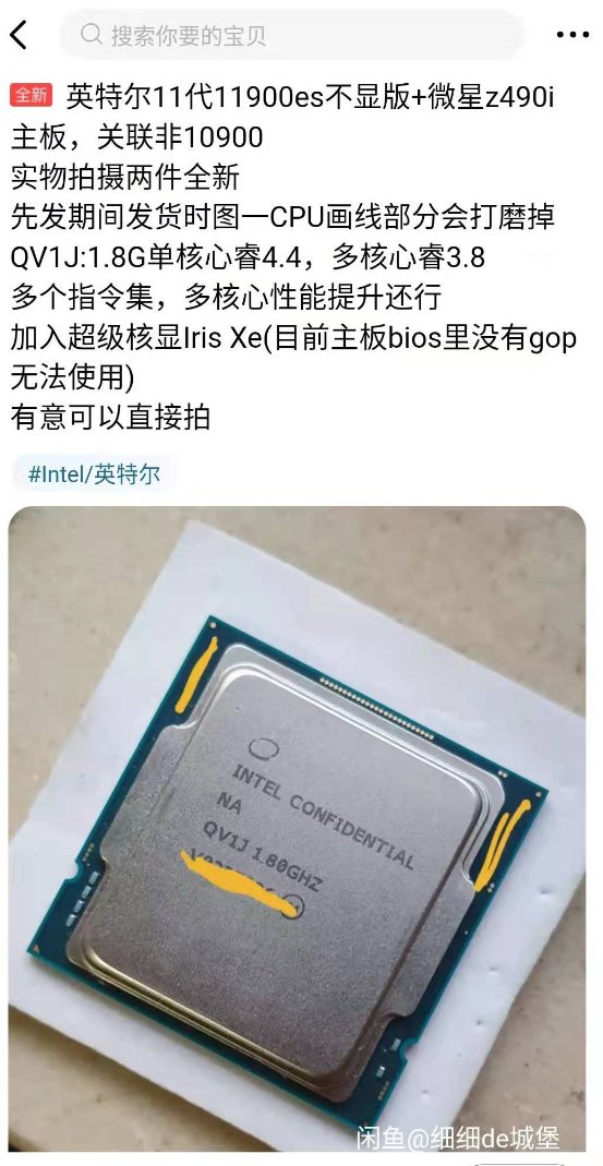 The screenshots with the CPU-Z benchmark results of the Core i9-11900 and photos of the 11900 engineering sample (QV1J) were shared by @9550pro. As per the photos, this sample had a base clock of 1.8GHz, an all-core boost of 3.8GHz, and a single-core boost of 4.4GHz. Regarding the remaining specifications of the Core i9-11900, it should feature 8 cores, 16threads, 16MB of cache, Intel Xe-LP Graphics with 32 EUs, and a 65W TDP.