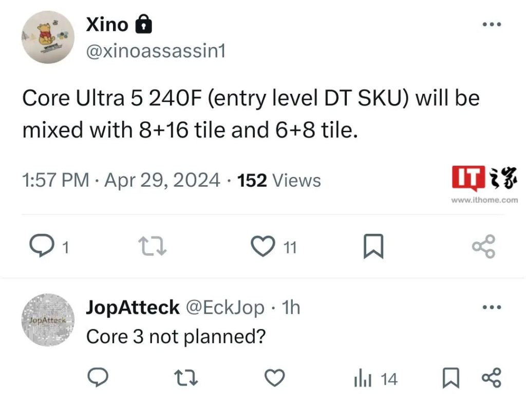 According to Xino (via ITHome), Intel is expected to use two dies for one of its mid-range CPUs, specifically the Core Ultra 5 240(F). This processor is superseding the Core i5-14400 variants, which are also based on two different dies/tiles. With the Arrow Lake series, Intel is expected to use a new core tile while keeping the other tiles (I/O and GPU) the same. The F-variant chips, which lack integrated graphics, will employ one of the two tile configurations: 8P+16E core or 6P+8E version.