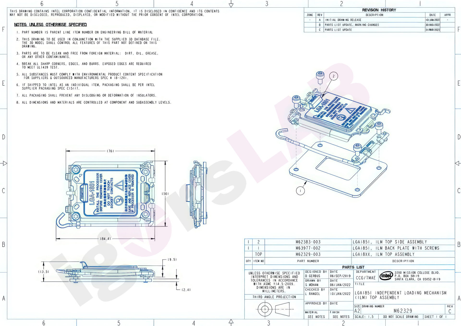 Igor'sLAB has revealed a variety of technical details for Intel's future LGA-1851 socket, including everything from the pinout to mechanical features. Although the new socket has more pins, the physical dimension is the same as the LGA-1700 sockets, therefore, existing coolers should be compatible with the LGA-1851 socket. The mounting pressure, however, has almost doubled from 489.5 N to 923 N, indicating that a new mounting kit may be required.