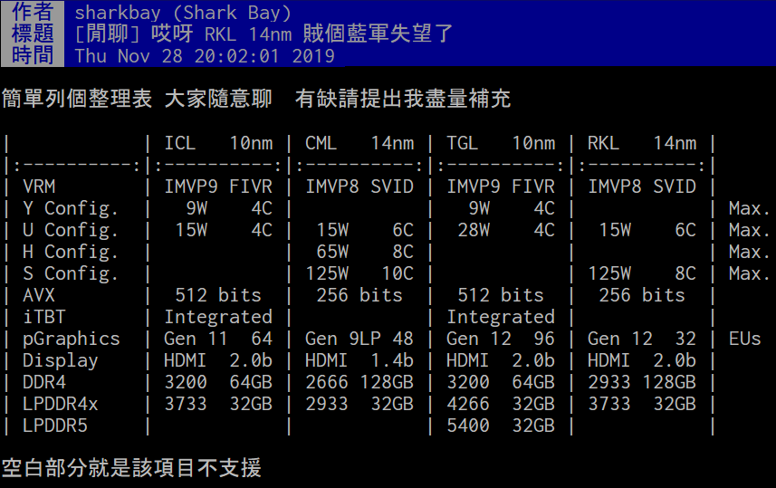 Sharkbay, a user from the PTTWeb forum, has posted what appears to be a list of specifications for Intel's upcoming Rocket Lake-S CPU. The successor to Comet Lake is currently rumoured to cap out at eight cores while using the 14nm process node. As with any rumour though, all of this information should be taken with a grain of salt.