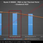 Like its predecessor, the Ryzen 9 7950X, the new Ryzen 9 9950X can reach 95°C under full load. With MSI's Set Thermal Point, users can choose one of three temperature limit options: 85°C, 75°C, and 65°C. These options will lock the max temperature to the selected value, marginally decreasing performance in exchange for considerably lower temperatures. For instance, with the Ryzen 9 9950X, the data shared by MSI shows that choosing the 85°C thermal point can effectively control the temperature while maintaining or even slightly enhancing performance thanks to MSI's optimisations.