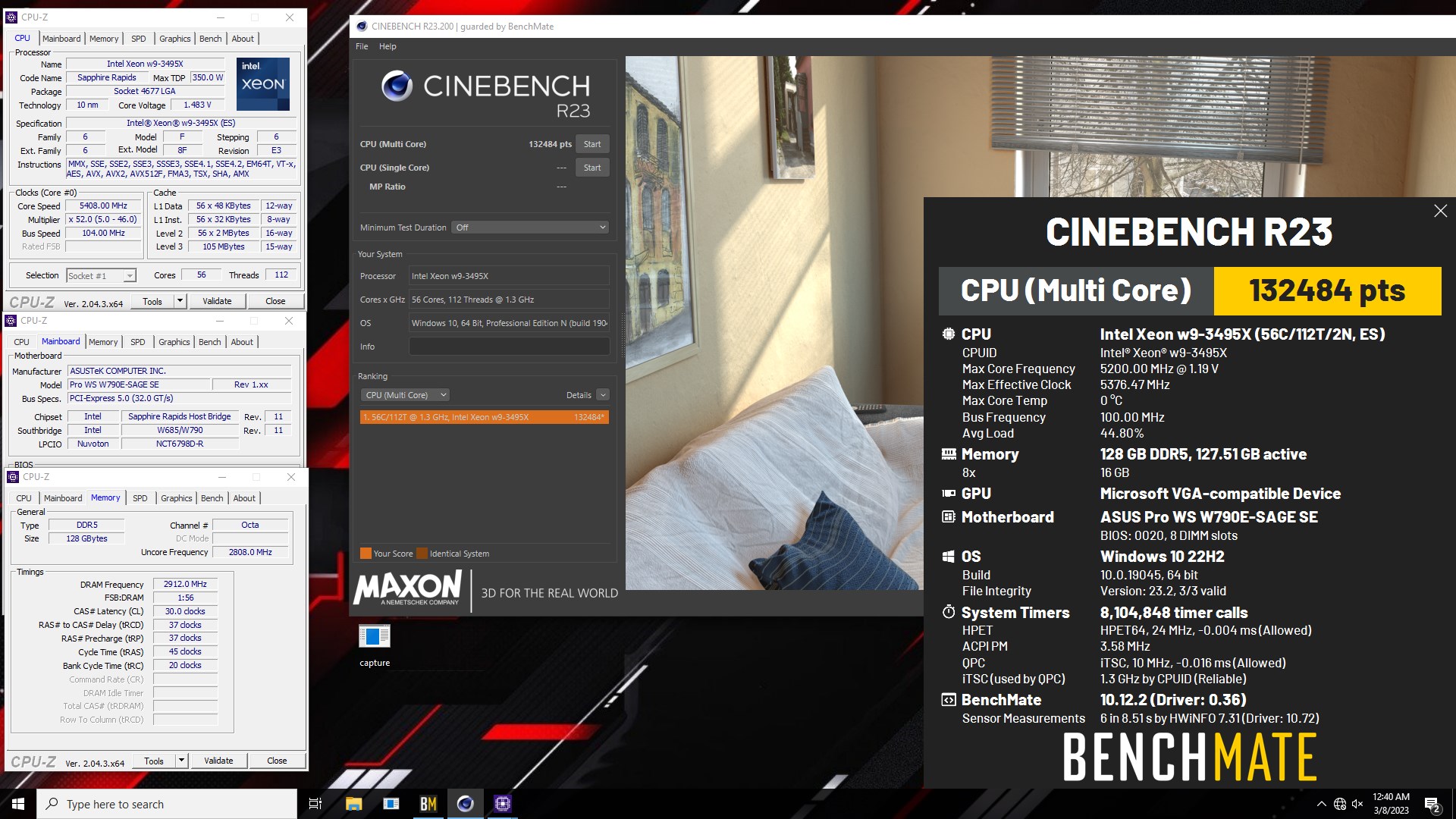 The previous CB R23 multi-core world record was from safedisk, who had overclocked the Intel Xeon W9-3945X to 5.22GHz, allowing it to score 128,391 points on the benchmark. However, that score has now been beaten by OGS, who scored 132,484 points.