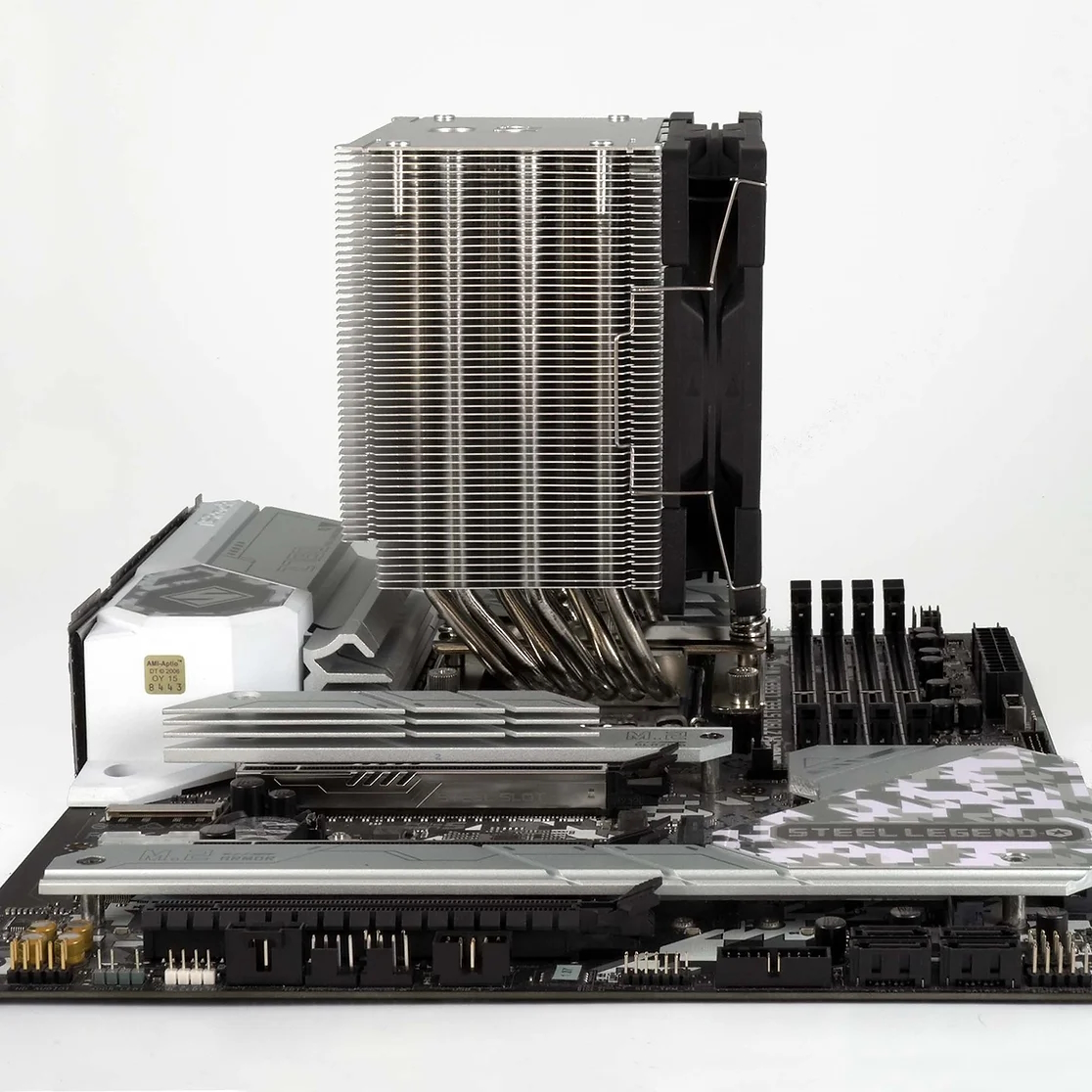 Both versions have Wonder Tornado 120 PWM fans (1 for the SCMG-6000, two for the SCMG-6000DBE), with a frame optimised for static pressure. They have a variable rotation speed of 350 ± 200 rpm to 2,000 ± 10% rpm, allowing them to move up to 60.29 CFM of air at a maximum noise level of 26.88.8 dBA. The static pressure varies from 0.49 to 24.03 Pa (0.05 to 2.45 mmH2O). The Mugen 6 is 132mm wide, 106mm deep, and 154.5mm tall, weighing 1.013kg. The Mugen 6 Black Edition is 132mm wide, 132mm deep, 154.5mm tall, and weighs 1.197kg.