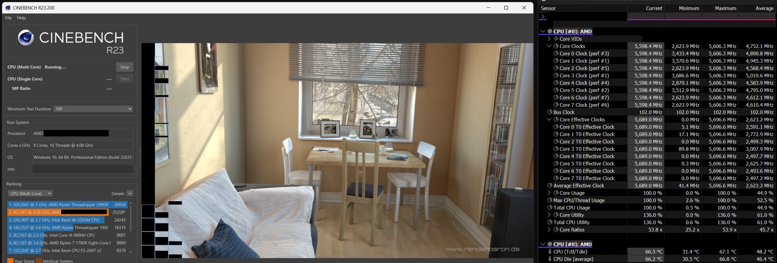 It's worth pointing out that the screenshots don't explicitly name the 9800X3D. Still, the data shown in CPU-Z definitely suggests this is the upcoming X3D chip, or more specifically, an engineering sample rather than a retail SKU. The software also shows a clock speed of 5,643 MHz and BenchMate an “effective frequency” of 5687.53 MHz during Cinebench R23 testing. Further observations indicate that the CPU runs with PBO, Curve Optimizer, enhanced by a clock offset and BCLK modification.