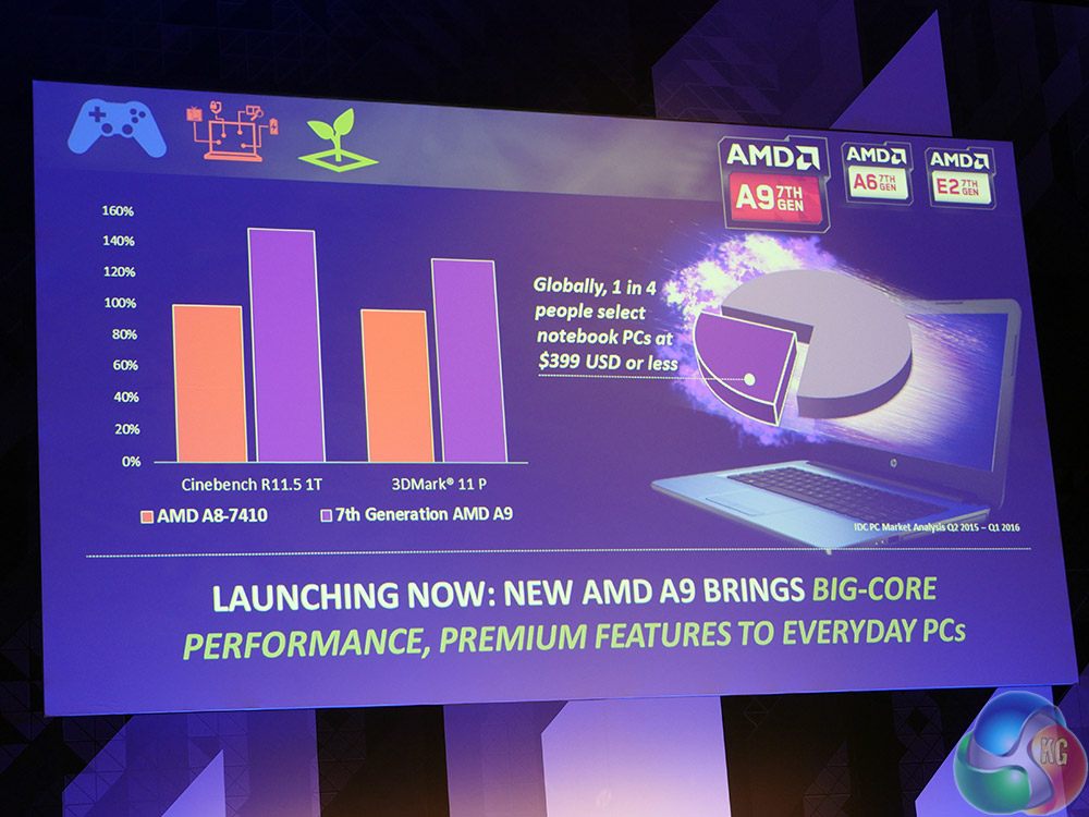 All will offer support for 4K video, even on notebook platforms. That's where the A9 chips will be most present bringing “big-core performance, premium features to everyday PCs.”
