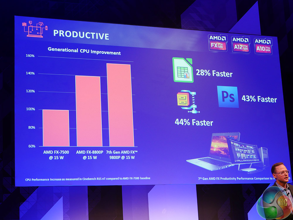 As much as AMD talked up its own hardware though, it also roped in some of its friends to give its 7th gen APUs a resounding endorsement too. Matt Perry, head of the partner program at Microsoft made an appearance, along with Josephine Tran, VP of consumer product management for notebooks at HP and Ray Vah, VP of consumer products at Dell.