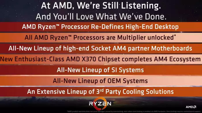 AMD has confirmed with some slide releases that the next-generation CPUs it will be releasing as part of its Ryzen range, will have fully unlocked multipliers. That's not a restriction to high-end chips either: every single Ryzen CPU will be ‘unlocked,' meaning every chip can be overclocked very easily.