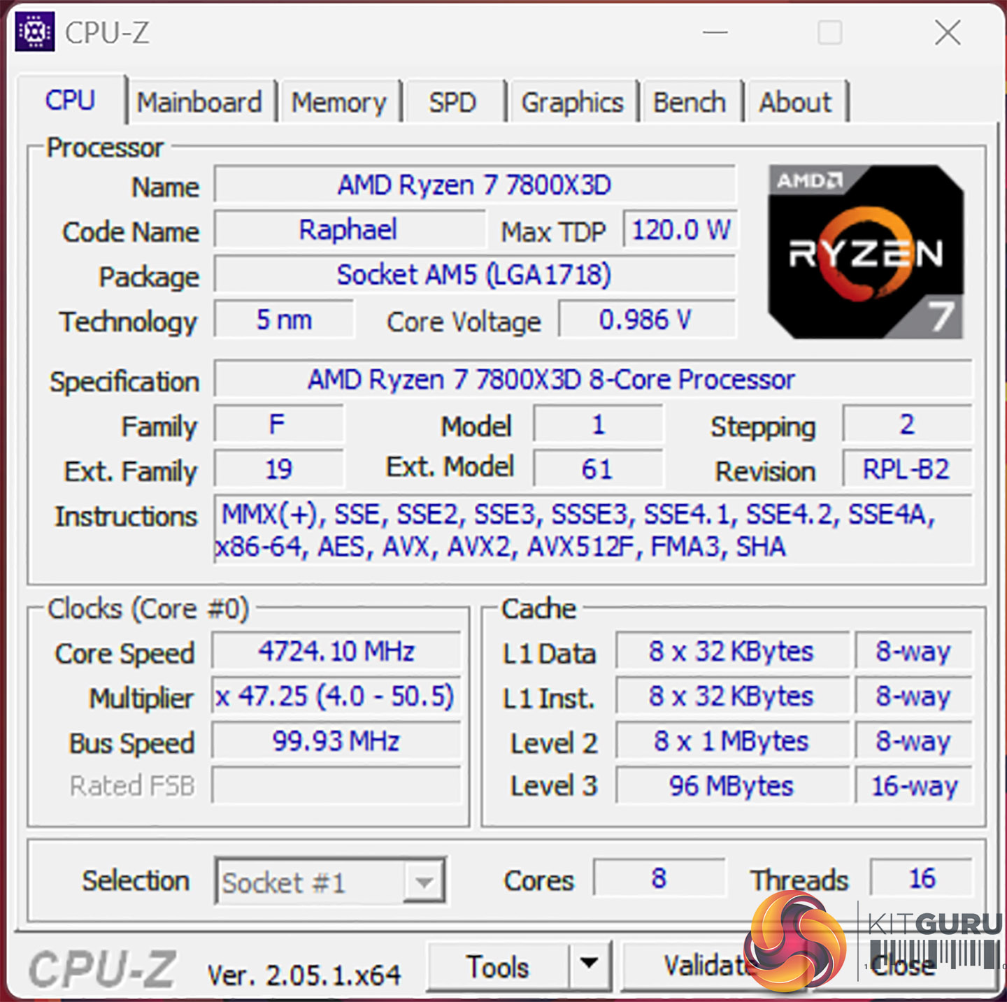 Specification of AMD Ryzen 7 7800X3D