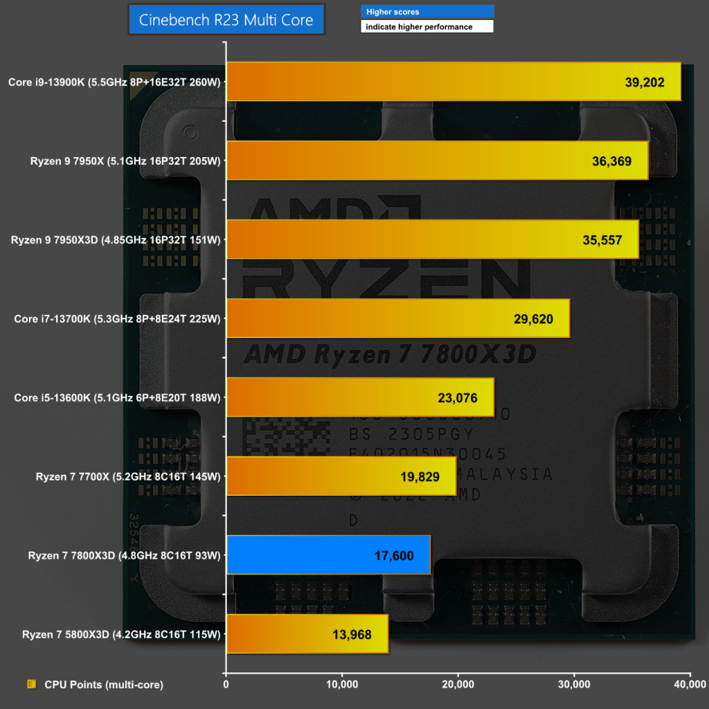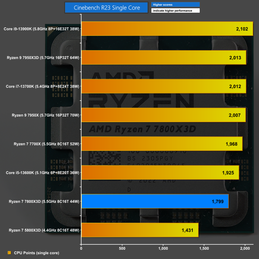 It is a similar story in Cinebench R23 Single Core where the Ryzen 7 7800X3D delivers modest performance that fails to set the world alight.