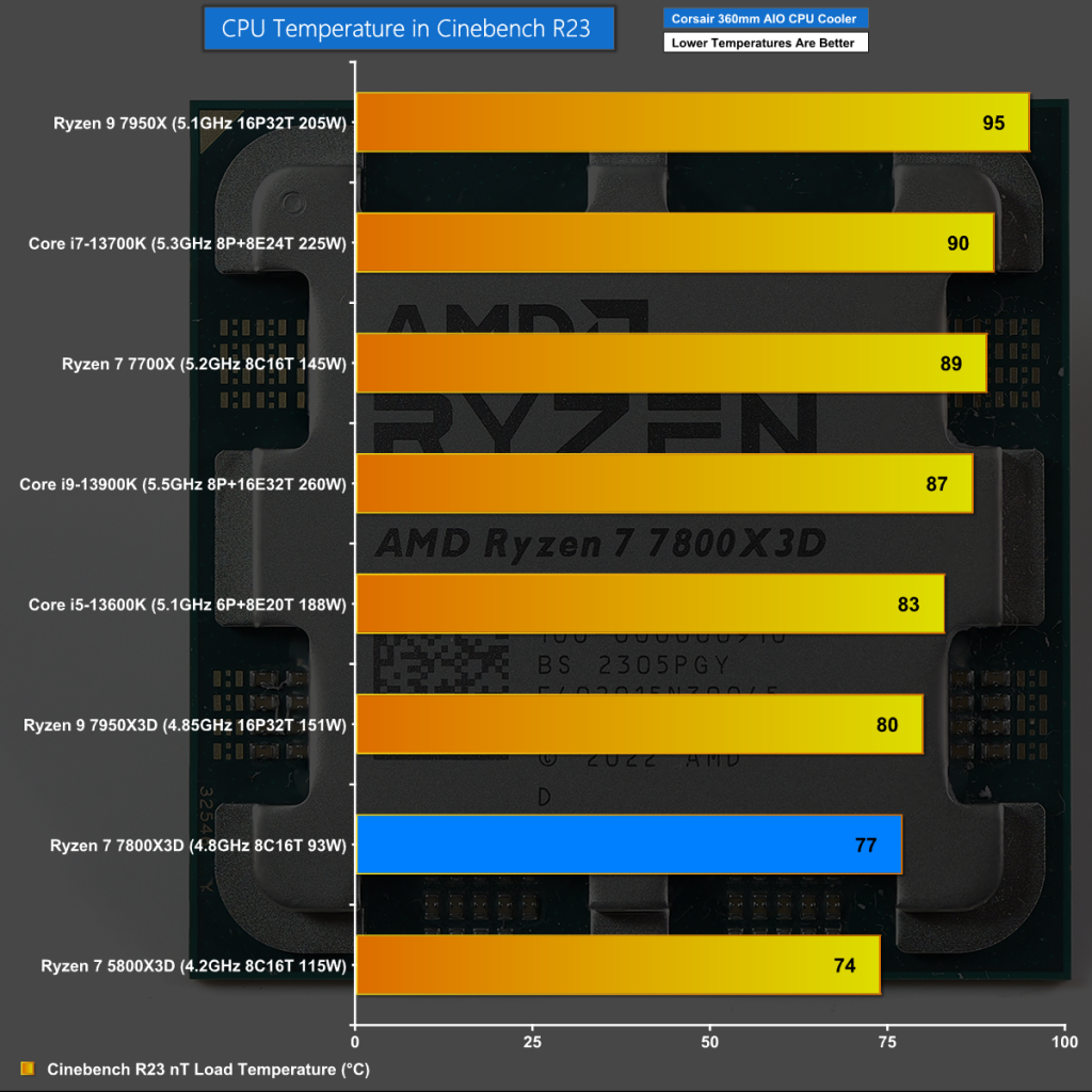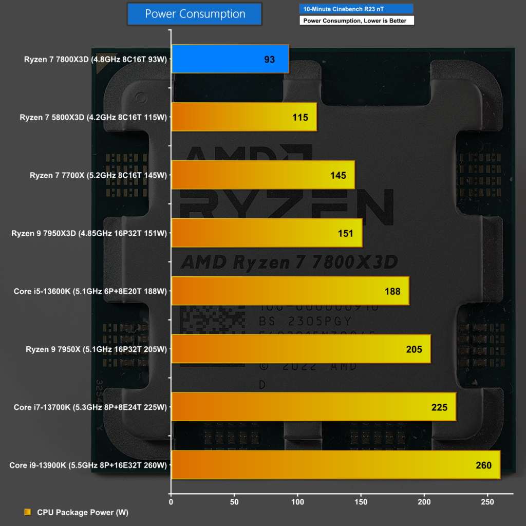 The flip side of modest CPU performance is low power draw but even so we did not expect the Ryzen 7 7800X3D would draw less than 100W, falling way short of the nominal 120W TDP.