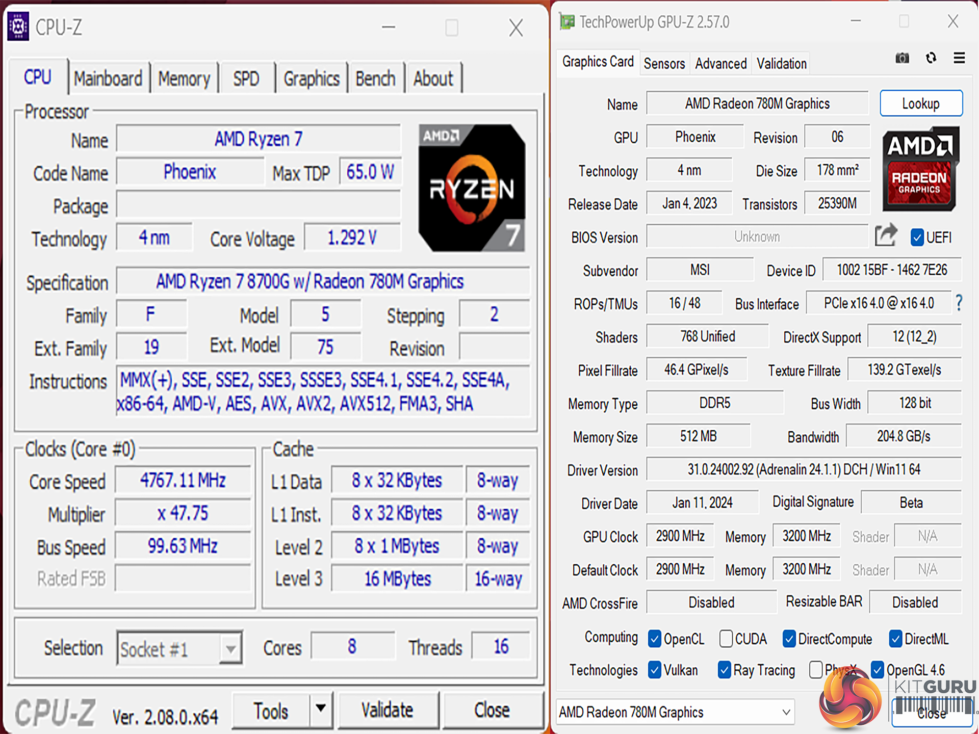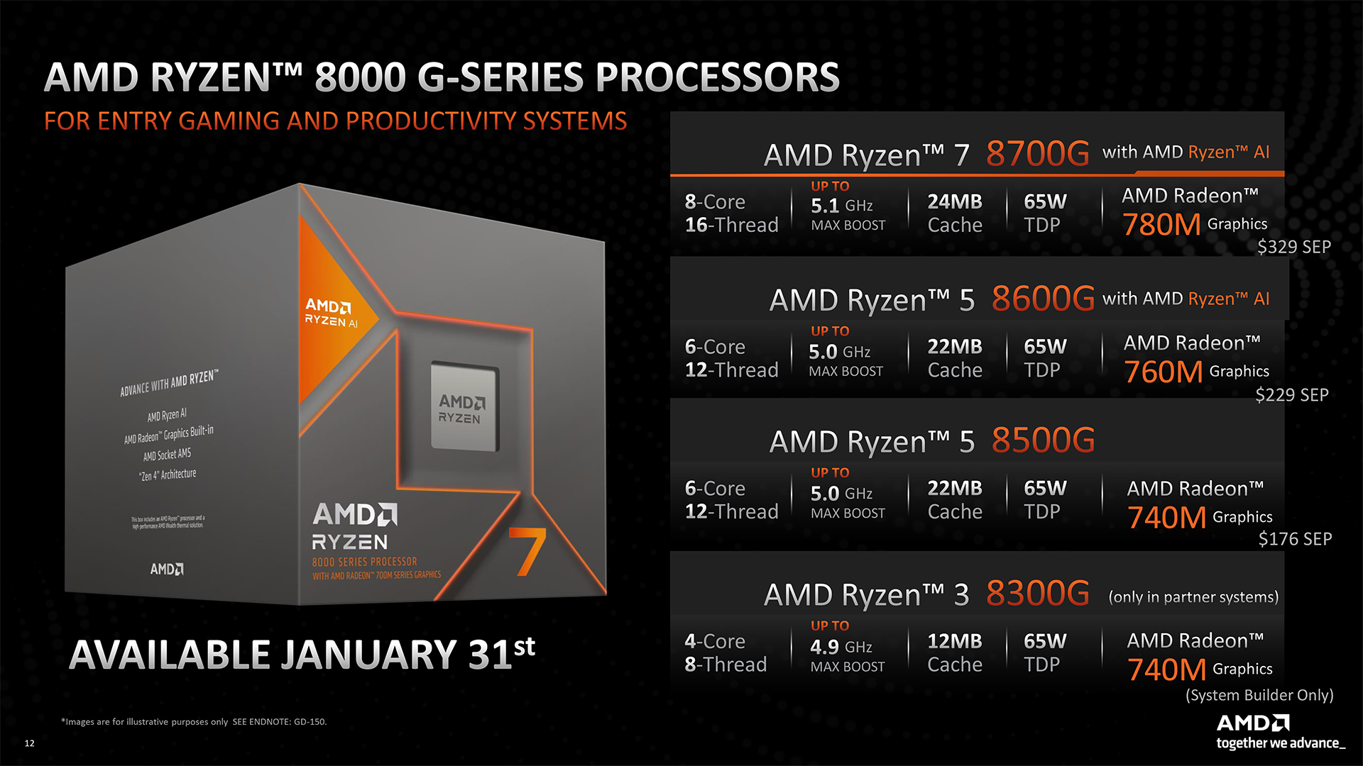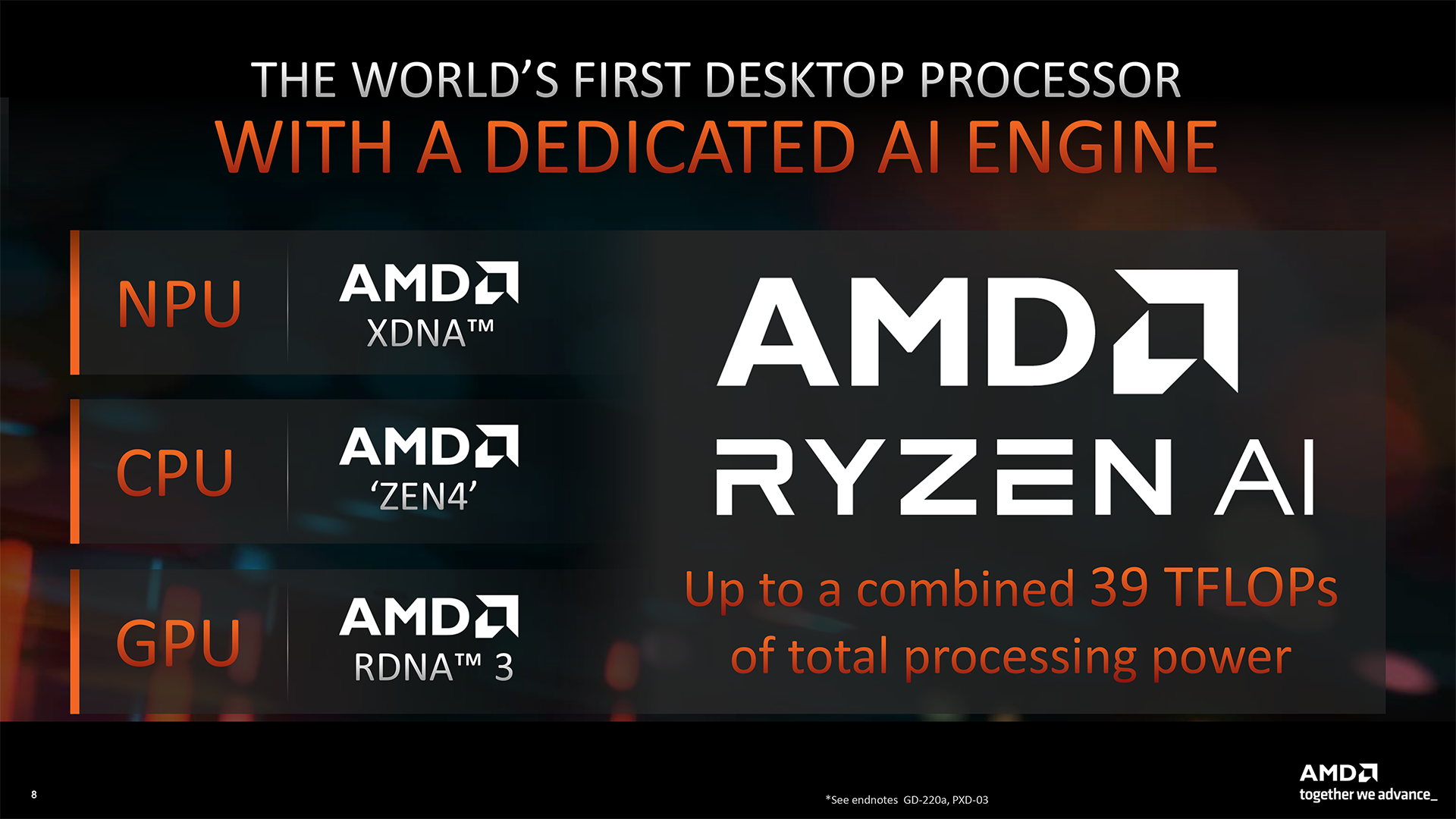 The key points about the Ryzen 7 8700G is that it packs eight Zen4 cores, just like a regular desktop Ryzen 7, and also sports integrated Radeon 780M graphics that promise Full HD gaming at 60+ fps, provided you set image quality to Low. In addition you get an XDNA engine for AI duties and while we are sure that will come in handy in the future, we currently consider it to be a bit of a sideshow.