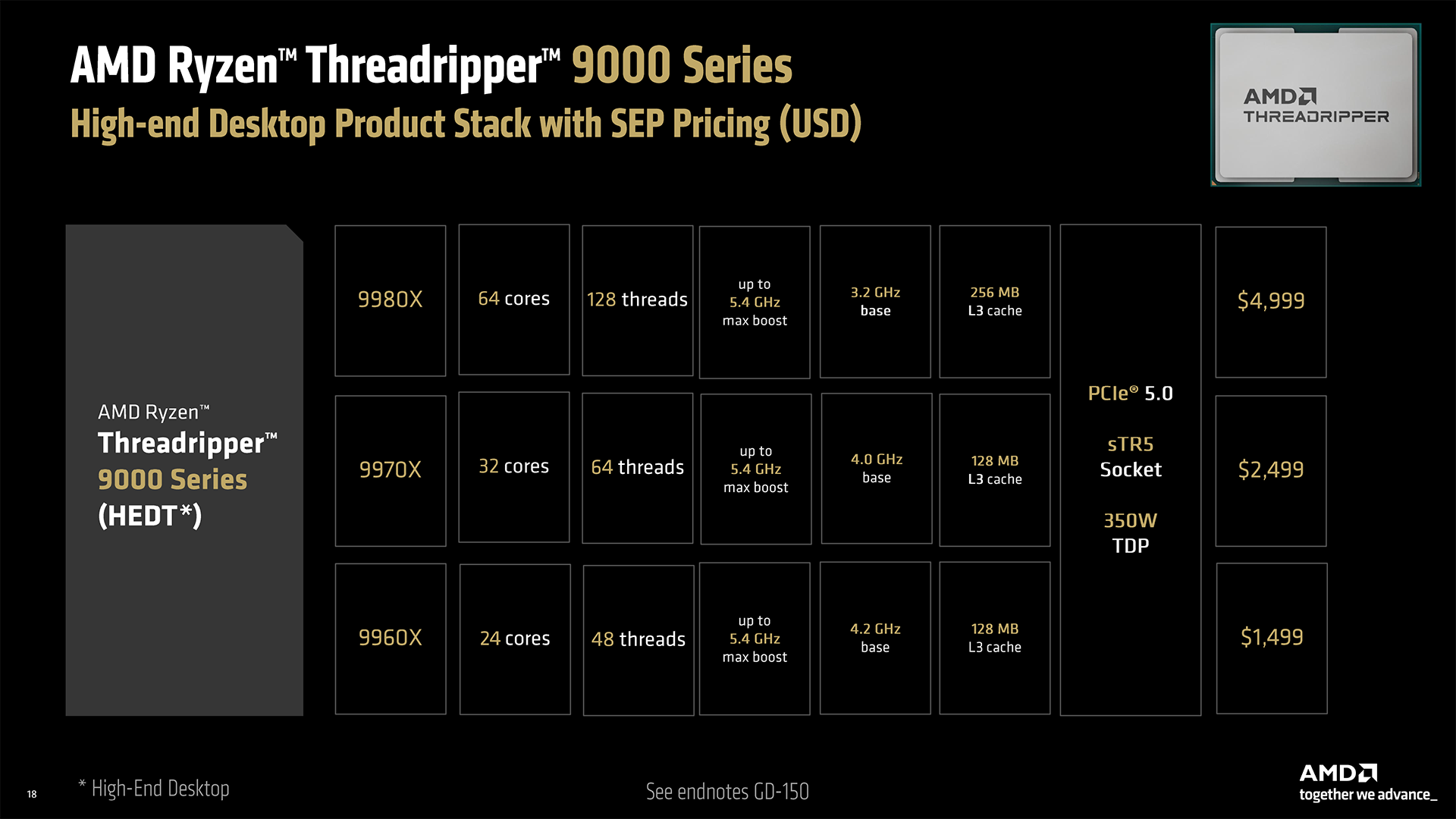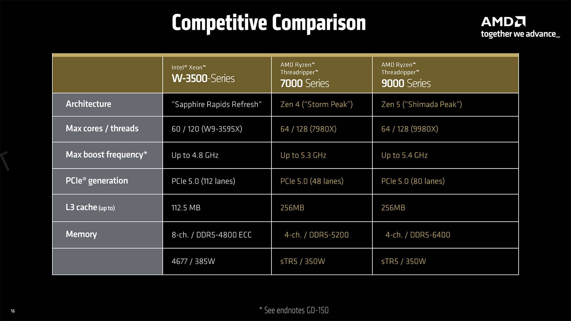 When you dig into the specifications you might wonder exactly what has changed from Threadripper 7000 on Zen 4 technology to these Zen 5 Threadripper 9000 parts. The answer on the face of it is ‘not much' apart from support for slightly faster memory and the expectation of improved IPC.