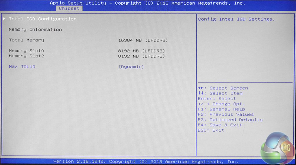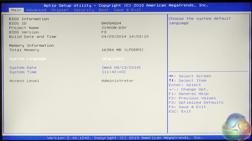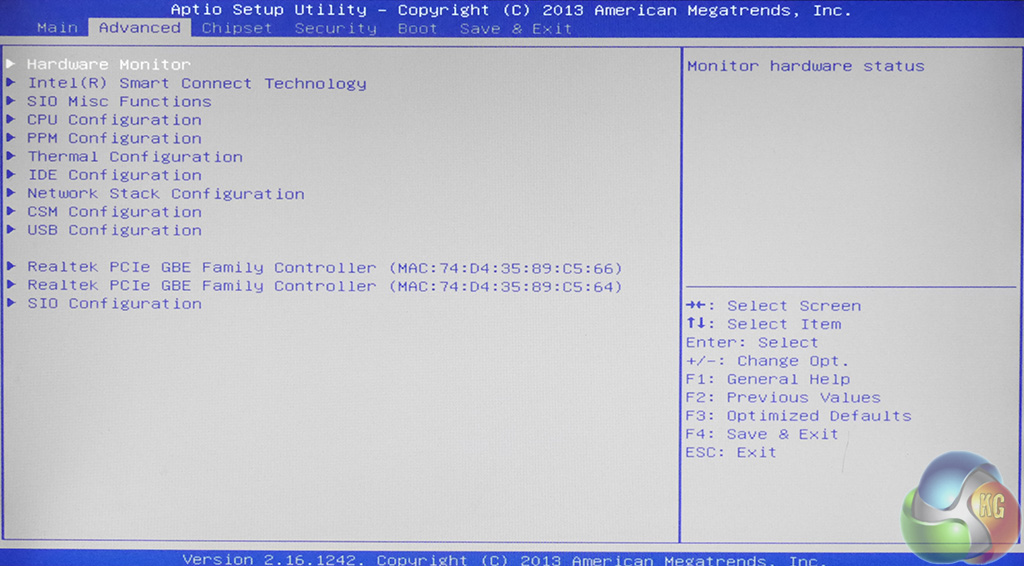 Navigating the olde worlde AMI BIOS is a little tedious as you work your way around with the TAB and arrow keys – this is not a UEFI with mouse control. This has the potential to be a bit of a pain however you don't have to do very much in the BIOS as there are view options at your disposal.