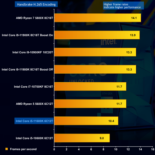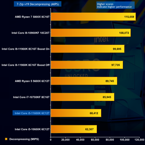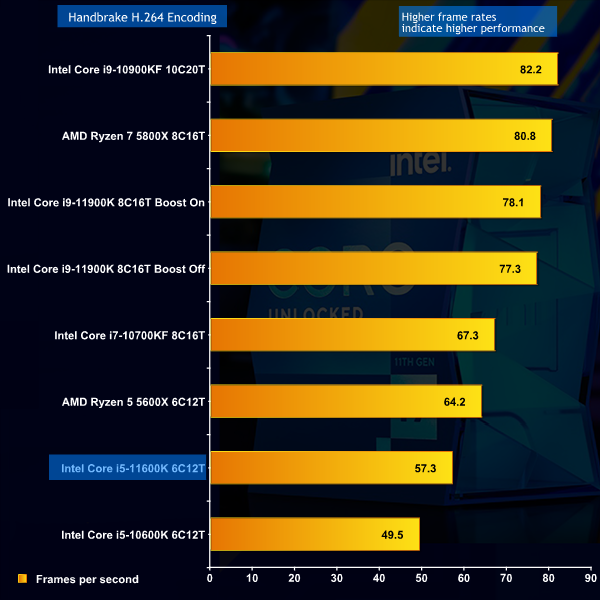 In these tests Core i5-11600K makes big improvements over the older model however it still lags a distance behind the Ryzen 5 5600X from AMD.