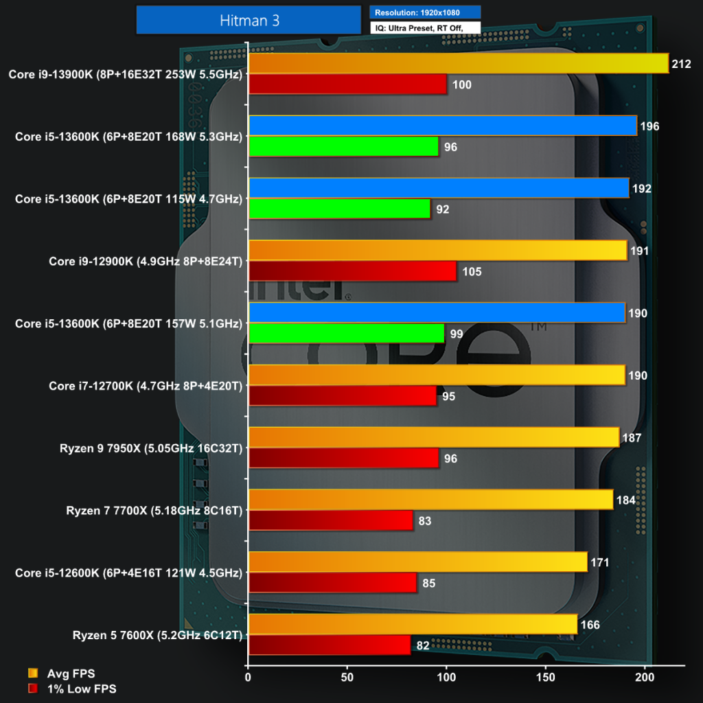 Hitman 3 at 1080p is amazing on the Core i5 with frame rates that come close to the new Core i9. Wow.