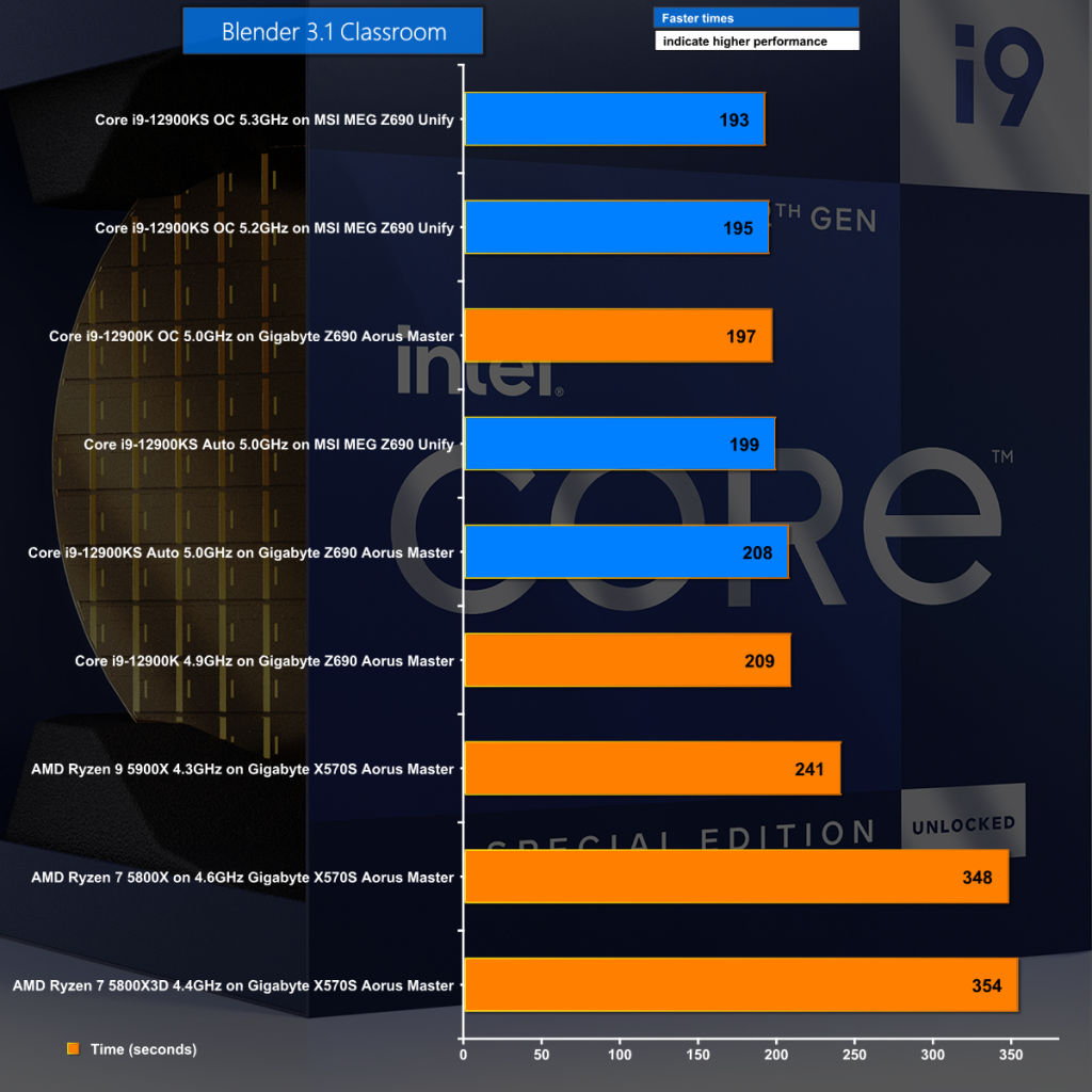 In Blender 3.1we can see that higher clock speeds deliver better performance. It is a nice, simple narrative that shows the KS in a good light.