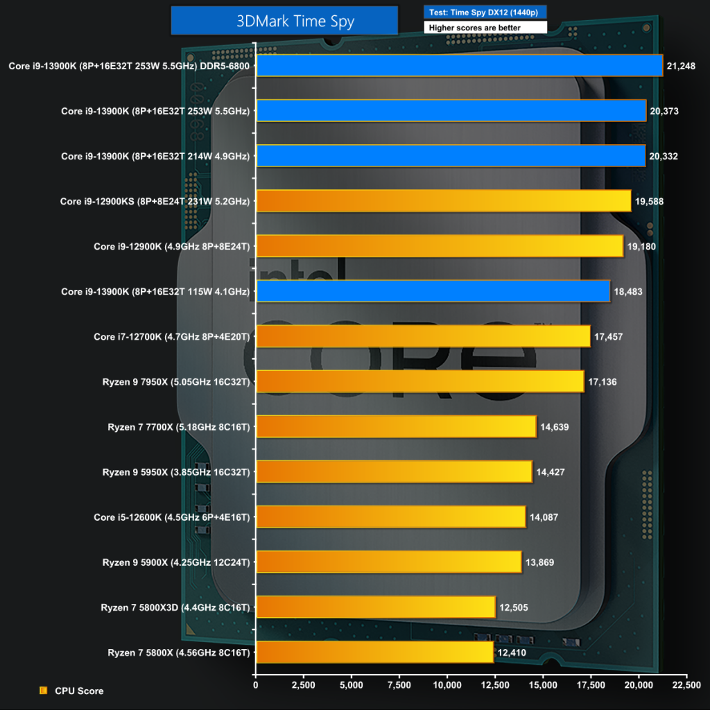 3D mark Time Spy is a curious test that seems to favour Intel over AMD so … big win for Core i9 and huge loss for Ryzen 9.