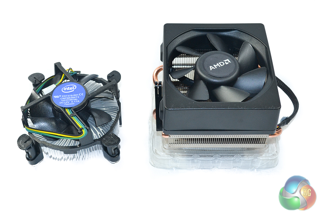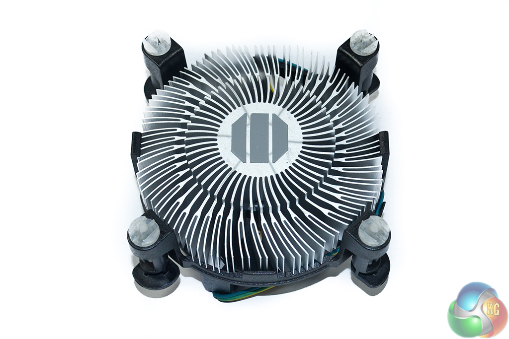 Intel's supplied CPU cooler is undeniably basic, especially in comparison to AMD's new Wraith unit. It serves its purpose for the 65W TDP processor, but it isn't the quietest or highest performance offering available (needless to say).