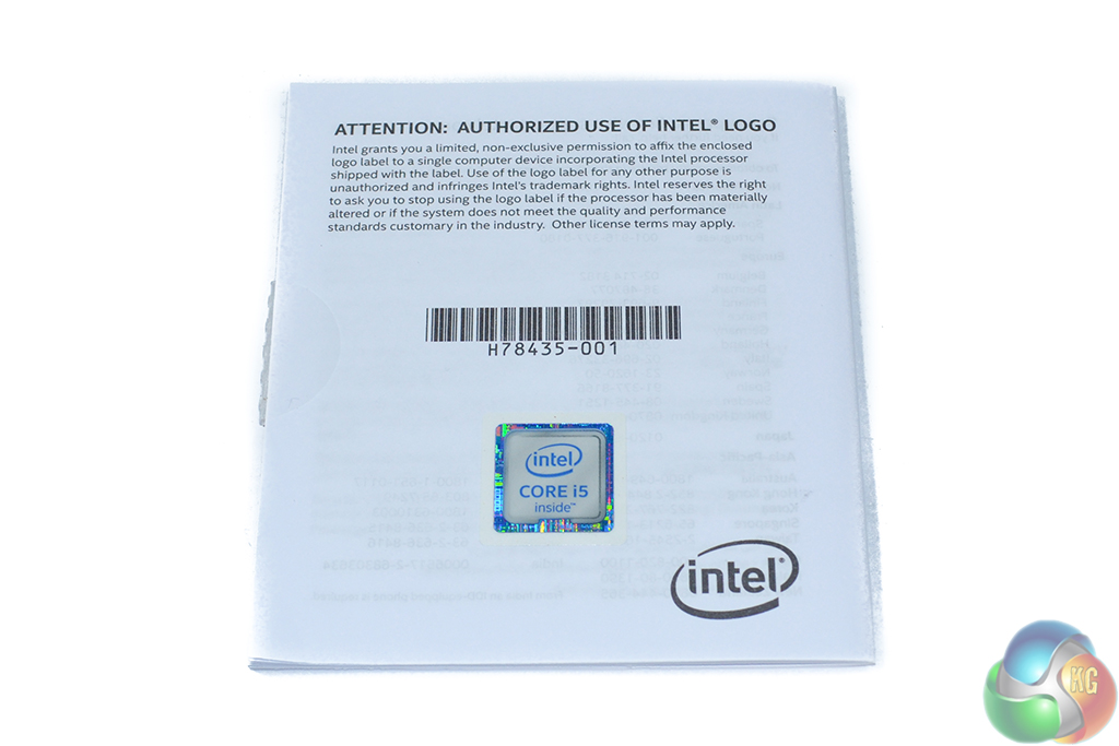A small booklet outlines the installation procedure for the reference CPU cooler and also houses the Intel Core i5 Inside case sticker.