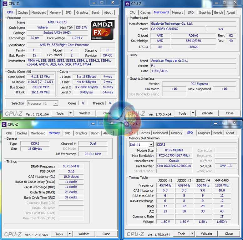 16GB (2x8GB) @ 2133MHz 10-11-11 DDR3 @ 1.65V |