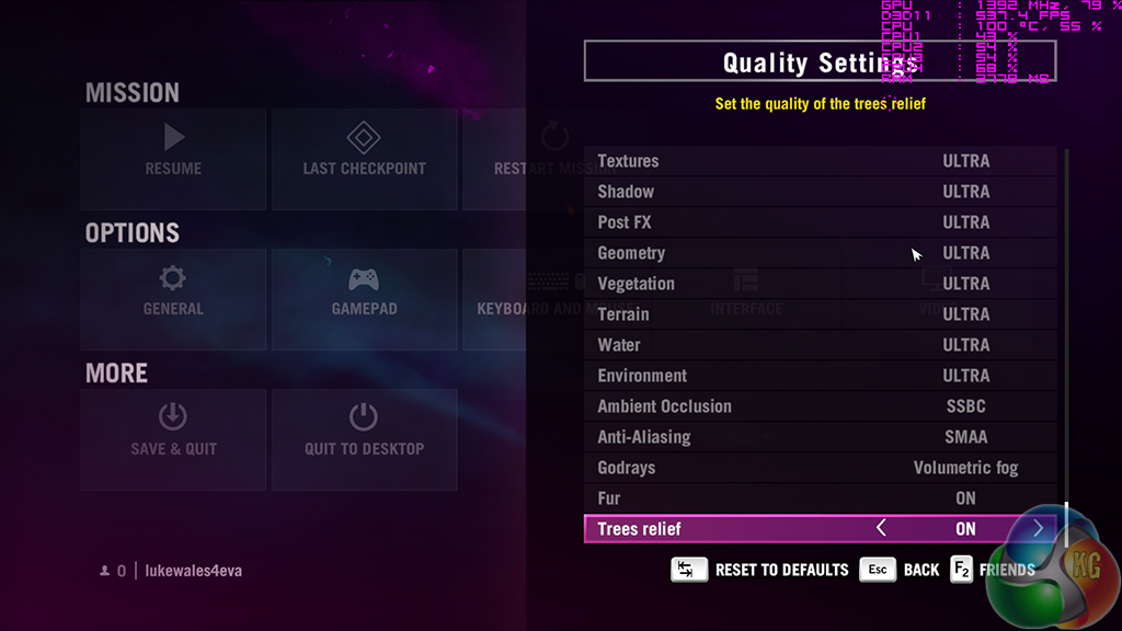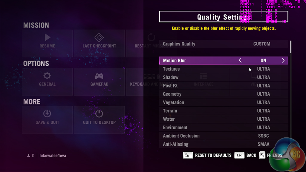 Ultra quality settings are applied for Far Cry 4, with a 1920×1080 resolution. SSBC and SSAA are applied, rather than Nvidia's GameWorks features.