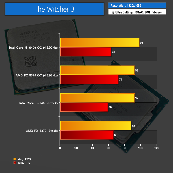 So when it comes to The Witcher 3, both the Intel and AMD configurations are positive choices. However, the additional cores offered by AMD's chip, as well as the superb load-balancing optimisation of the game's engine, means that the FX 8370 may be better equipped for handling areas of increased character interaction.