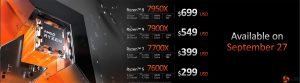 AMD has today shared more details on its upcoming Ryzen 7000 Series – Zen 4 – desktop processors. Shipping to customers on September 27th, the flagship 16-core Ryzen 9 7950X will sell for $699 USD and is touted as having 13% IPC uplift versus Zen 3, up to 5.7GHz peak frequency, and up to 29% higher single-thread performance against Ryzen 5000.