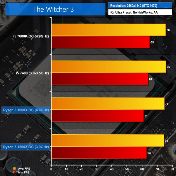 The Witcher 3, by contrast, does not seem to mind which CPU it uses to power the GTX 1070 and a 1440P resolution.