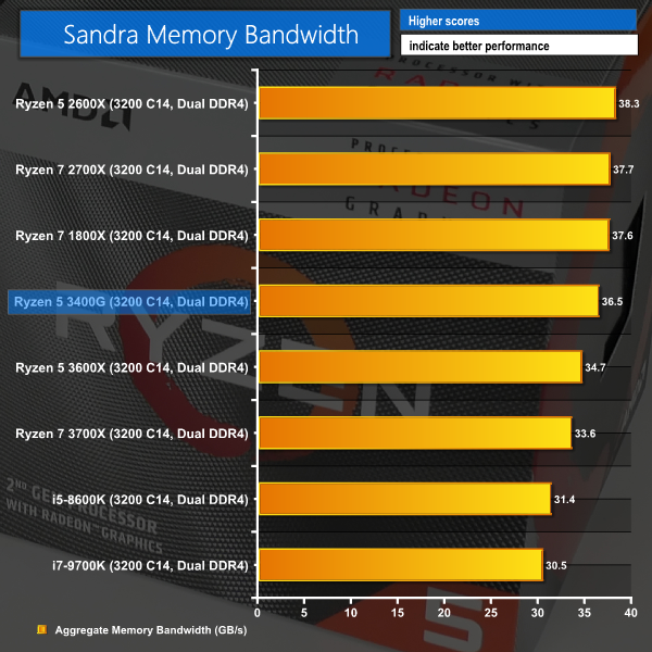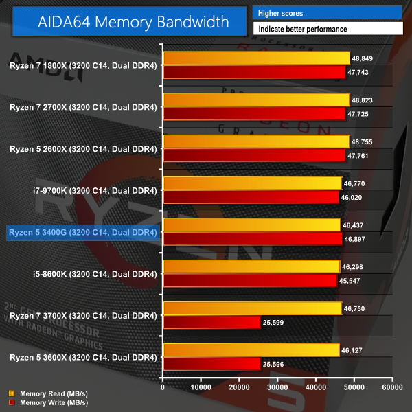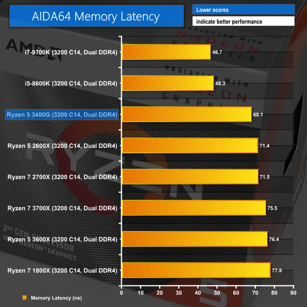 Memory bandwidth and latency are where we'd expect for Zen+ with 3200MHz CL14 memory. RAM speed and bandwidth is important for this APU as the GPU component carves off 2GB of capacity for use as its own dedicated VRAM.