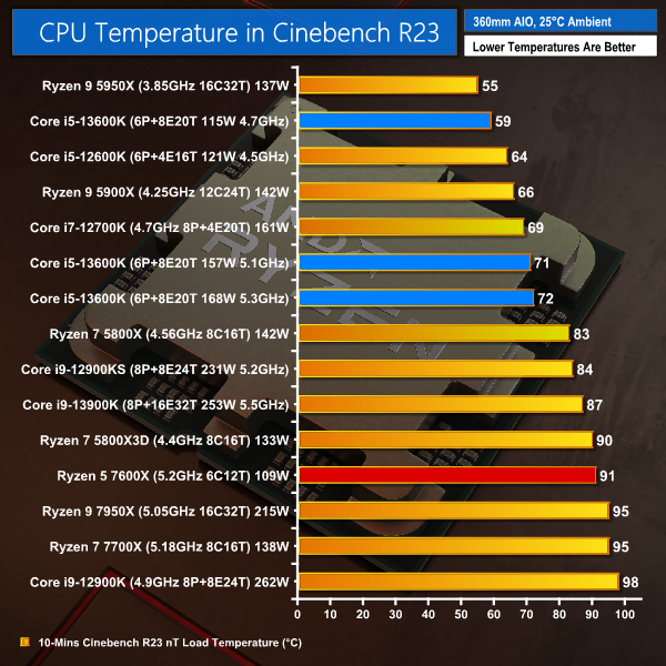 Despite offering relatively modest power draw figures, Zen 4 continues to run very hot in the Ryzen 5 7600X form.