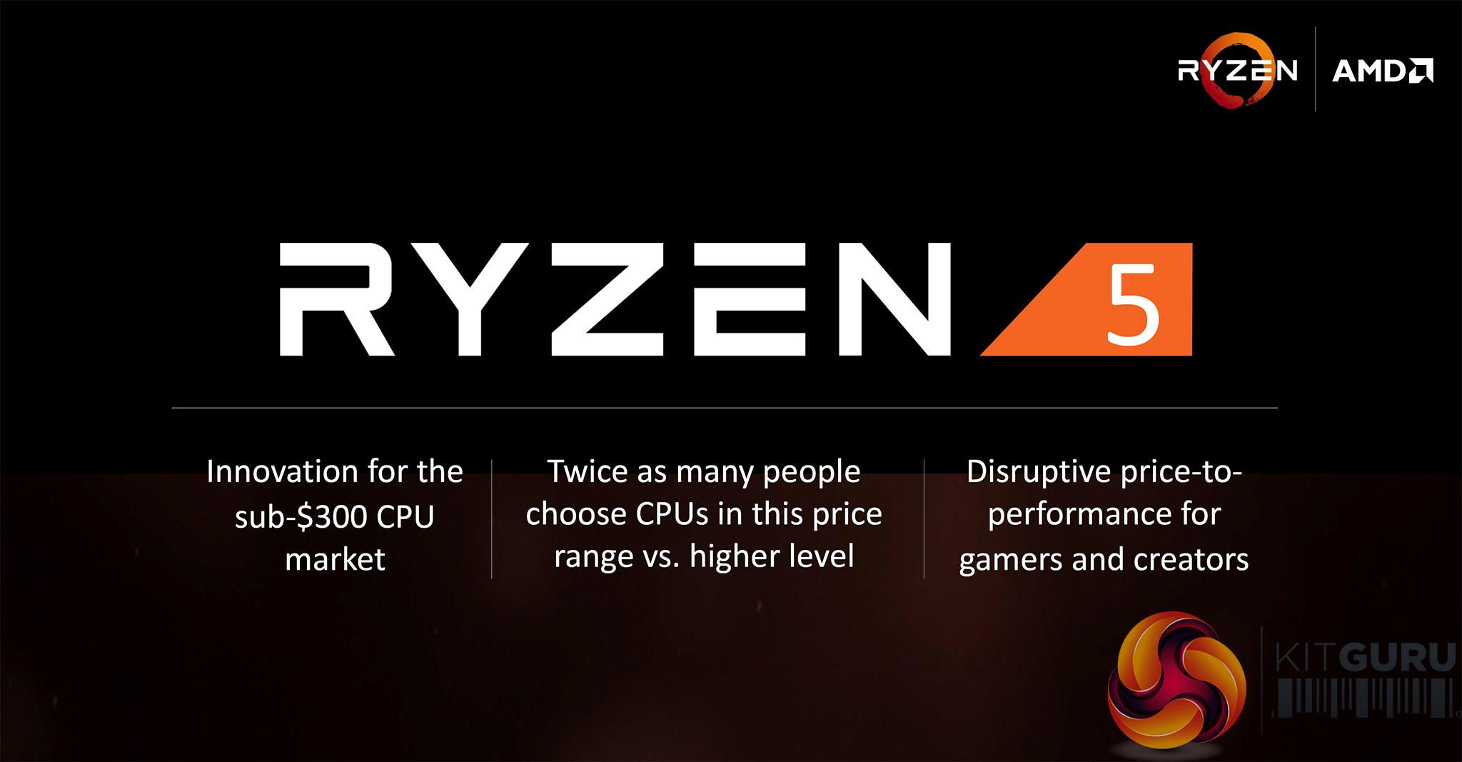 KitGuru Says: Ryzen 5 is AMD's weapon to shake up the sub-$300 processor market. With pricing that puts Ryzen 5 in competition with Core i3 and Core i5 CPUs, it will be interesting to see the performance on offer. Are you excited to see a six-core, twelve-thread processor available for a little over £200?