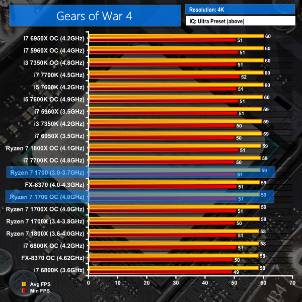 Note: The Core i7-2700K and i7-4790K are not shown in Gears of War 4 as the game download was too large to install on their system SSD and the clunky Windows Store platform gives errors when moving games installed on a secondary SSD between test systems.