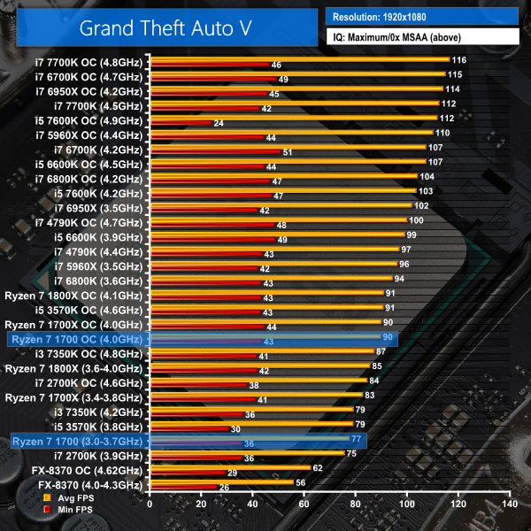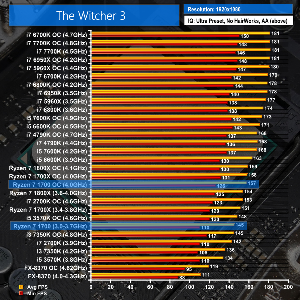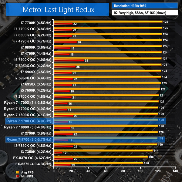 Of course, if you play any of these games on a 60Hz monitor (or even a <120Hz monitor for the last two), you are unlikely to notice any difference in performance between the Ryzen 1700 and Core i7-7700K. That point can also be extended to cheaper Core i5 CPUs.
