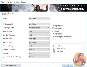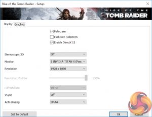 Rise of The Tomb Raider is a popular title which features both DX11 and DX12 modes. Heavy loading can be placed on the CPU, especially in the Syria and Geothermal Valley sections of the built-in benchmark.