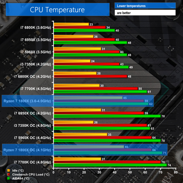 Update 17/03/2017: AMD has announced that Ryzen 7 1800X and 1700X have a +20°C temperature offset on the reading currently displayed by software, over the actual junction temperature. AMD is advising that 20°C can be subtracted from the reported Ryzen 7 1800X and 1700X temperature values to understand the actual junction temperature.