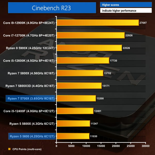 Notable, however, is that both Intel Core i5 parts outgun their AMD price competitors by a considerable margin. In fact, the Ryzen 5 5600-priced Core i5-12400F offers up rendering performance closer to the Ryzen 7 5700X than the 5700X does to its price-comparative Core i5-12600K.