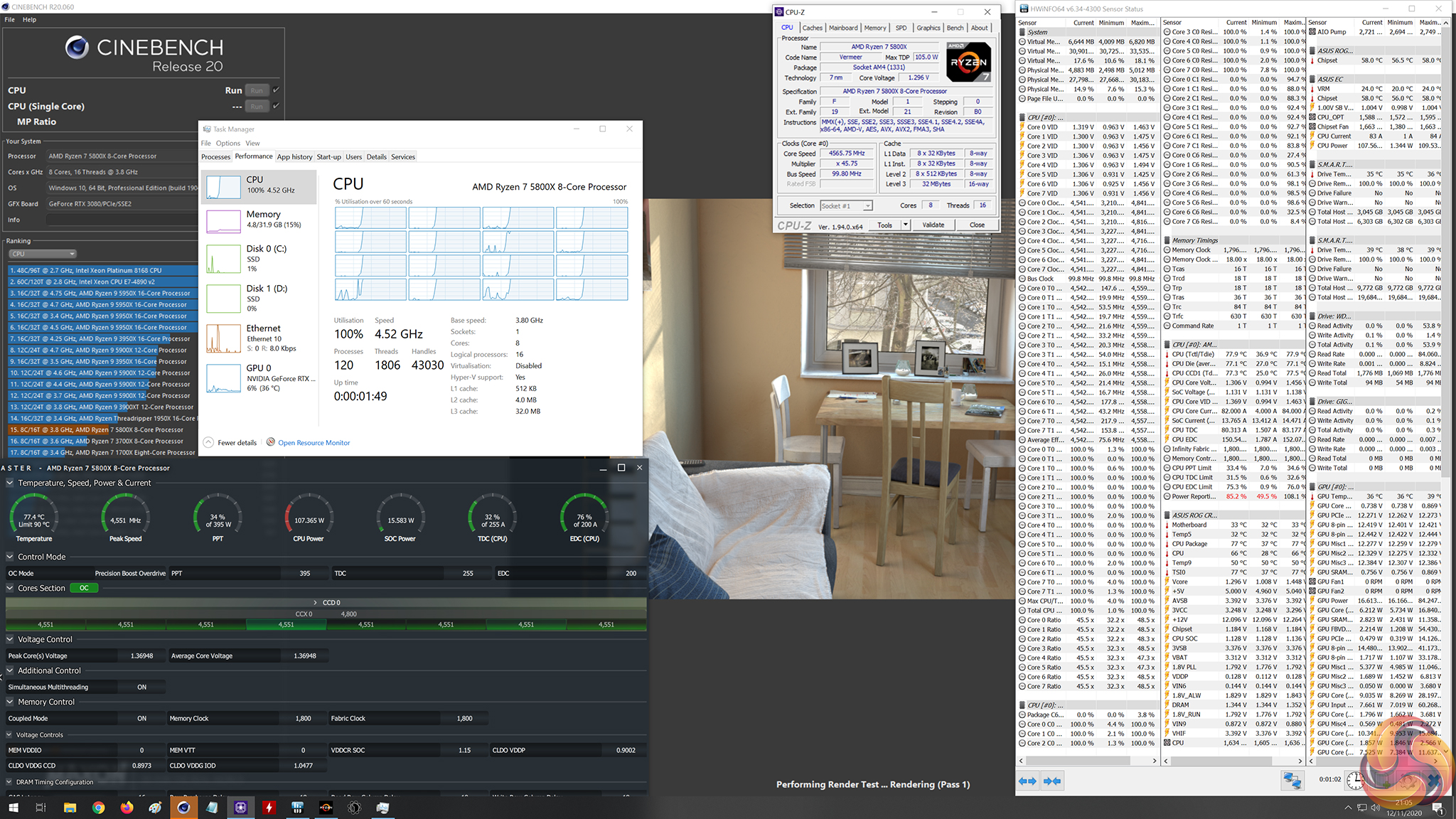 We see the 5800X hitting around 4.55GHz all-core frequency in the demanding Cinebench workload. This clock speed value holds up well using standard AIO cooling and it also highlights why the gains from our 4.7GHz manual overclock are slim.