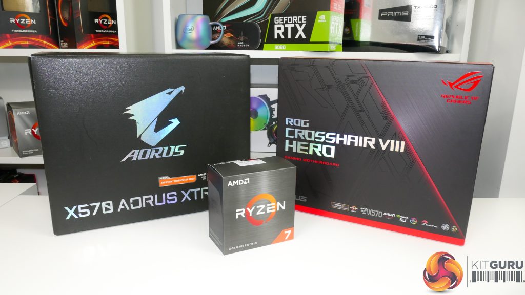 - AM4 Motherboards: ASUS ROG Crosshair VIII Hero & Gigabyte X570 Aorus Xtreme.