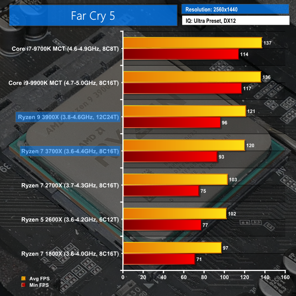 We supplement the 1080p gaming results with a pair of games tested at 2560×1440 resolution. We chose Deus Ex: Mankind Divided and Far Cry 5 as the former is particularly GPU heavy at higher resolutions and the latter is a (relatively) computationally-heavy, open-world game.