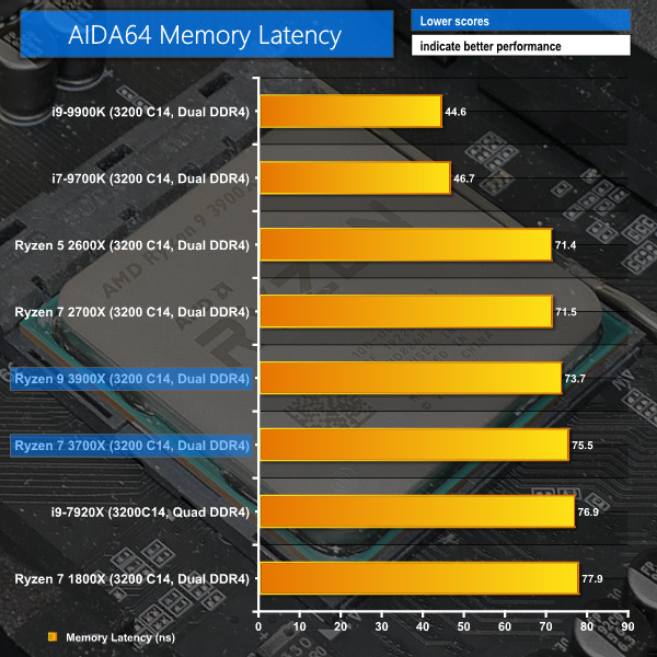 We checked with AMD regarding the roughly half-speed memory write performance from our Ryzen 7 3700X in AIDA64. According to the response, this is to be expected given the application of one CCD for the eight-core Zen 2 part, as opposed to two CCD and therefore two links to the memory controller in the IO die for the 12-core chip.
