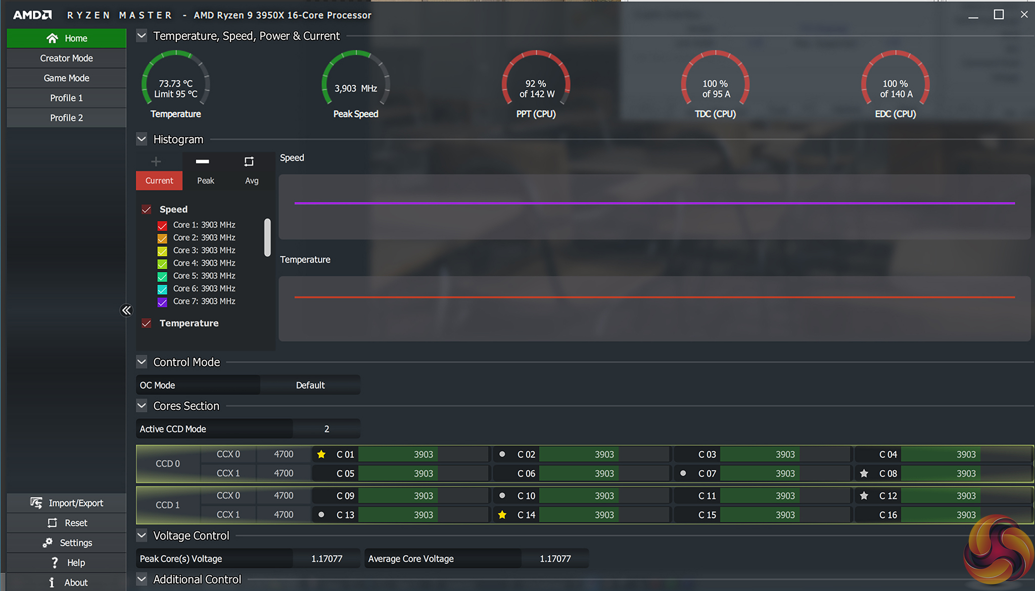 Clearly, clock frequency is the trade-off for the 3950X being able to reduce its power consumption. Nevertheless, you still get the full set of sixteen cores chomping through rendering tasks quickly and efficiently.