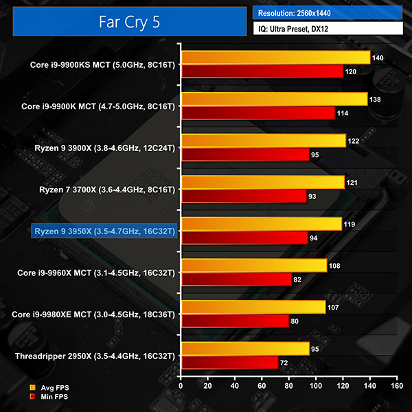 1440P gaming places more load on the GPU thus squeezing the performance margins. AMD's Ryzen 9 3950X continues to hold its own by offering frame rates than even high refresh rate gamers are likely to be happy with.