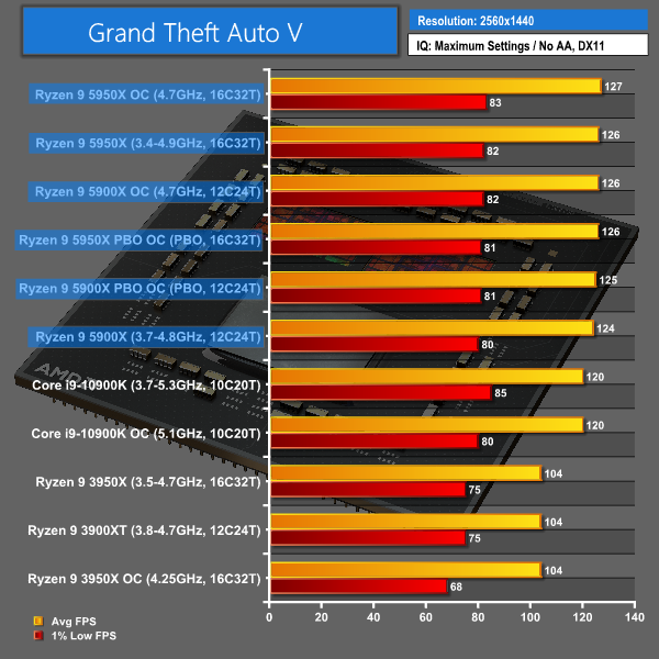 Equally important is the sizable performance increase for Zen 3 versus Zen 2. This now makes the new Ryzen 5000 series chips an excellent choice for high refresh rate gaming with GTA V, whereas previously, Intel was the superior option in that use case.