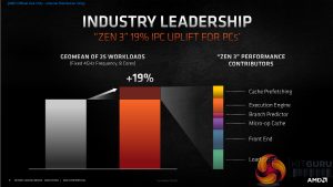 The critical point for AMD’s architectural improvements with Zen 3 is the suggested IPC increase of 19%. That’s a sizable performance gain for a single generation improvement that still fits into the same platform.