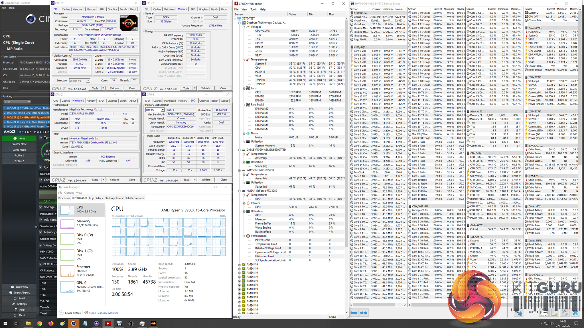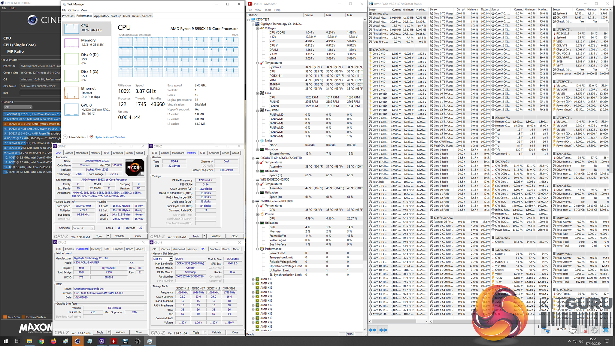 Interestingly, we see the 5950X operating above its rated maximum boost frequency. In the case of the 5950X, we observed clock values as high as 5050MHz, even if only for small periods of time. The usual maximum boost clock was around 4.95GHz, which is an impressive delivery from AMD.