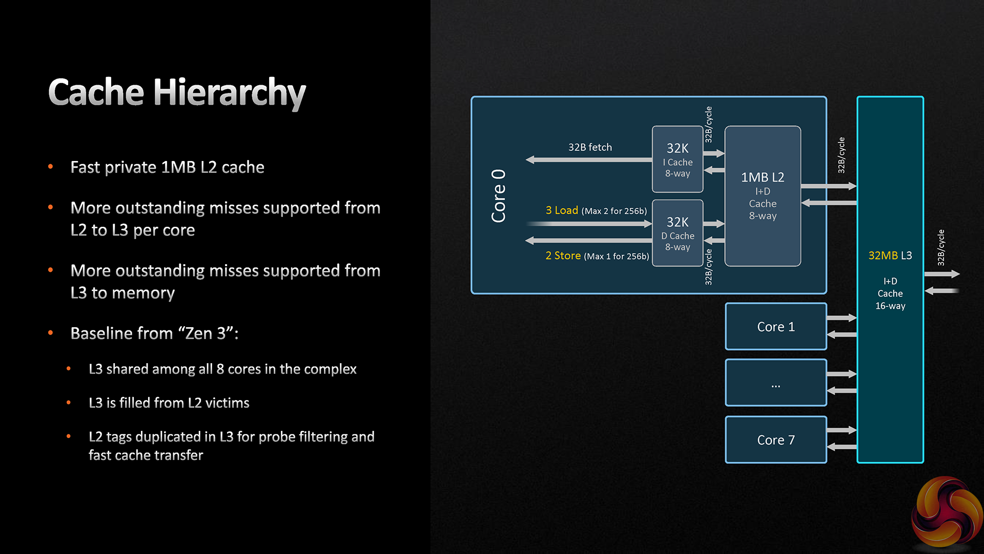 Changes to the cache structure allow AMD to enhance the data flow and reduce latency. One key area to this point is the doubling of L2 cache capacity to 1MB per core instead of 0.5MB per core on Zen 3.