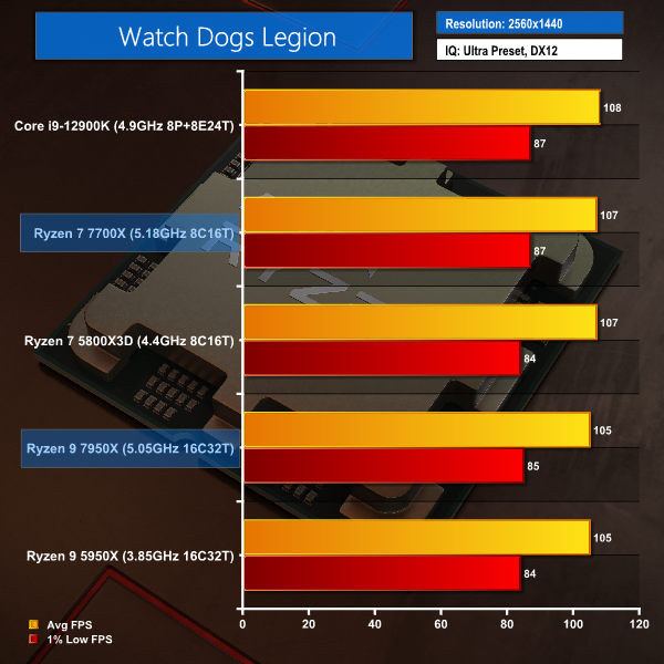 And there isn’t much to differentiate between any of these chips in Watch Dogs Legion at 1440p, particularly when accounting for run-to-run variations.