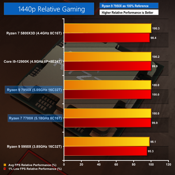 To summarise our 1440p gaming results, you really aren’t going to notice any worthwhile differences between Ryzen 7000, Ryzen 7 5800X3D, and Core i9-12900K unless you have copious amounts of GPU horsepower that can push to ludicrously high frame rates.